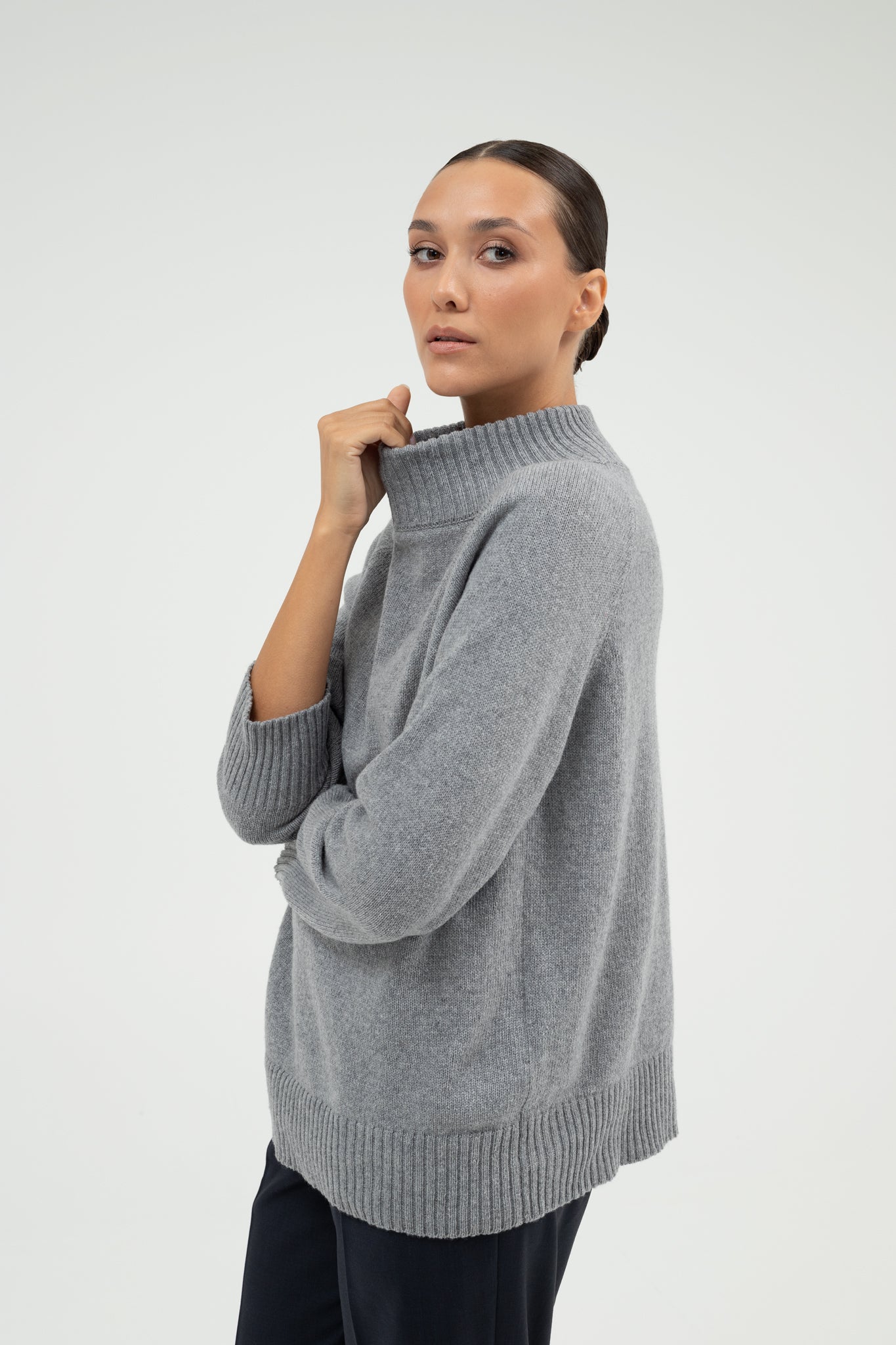 CLEO LIGHT GREY CASHMERE BLEND SWEATER