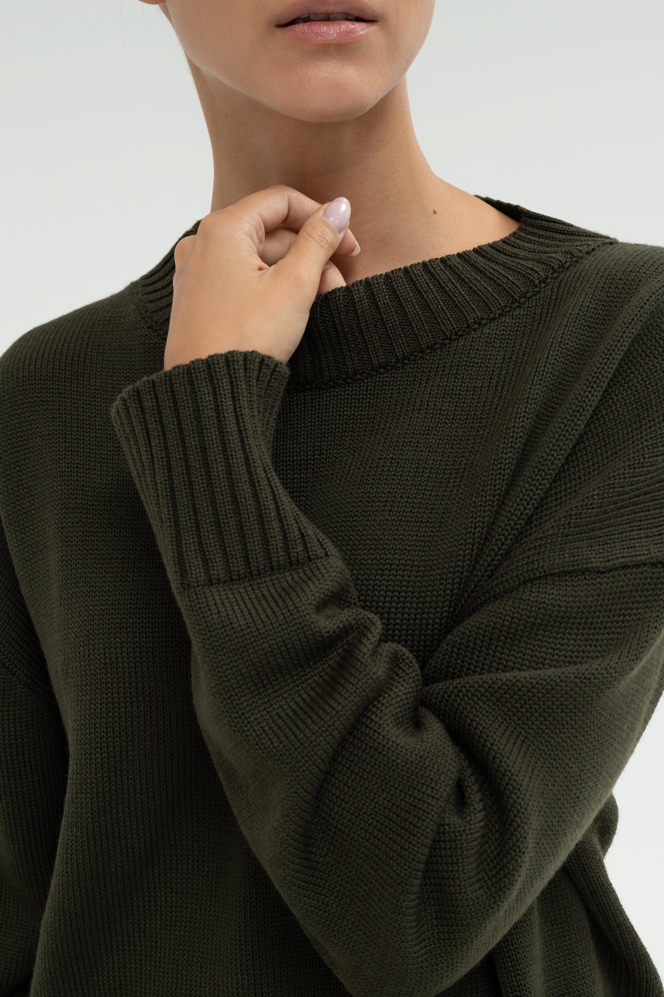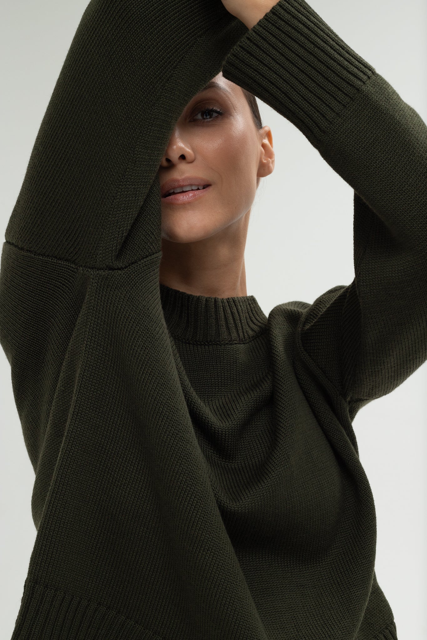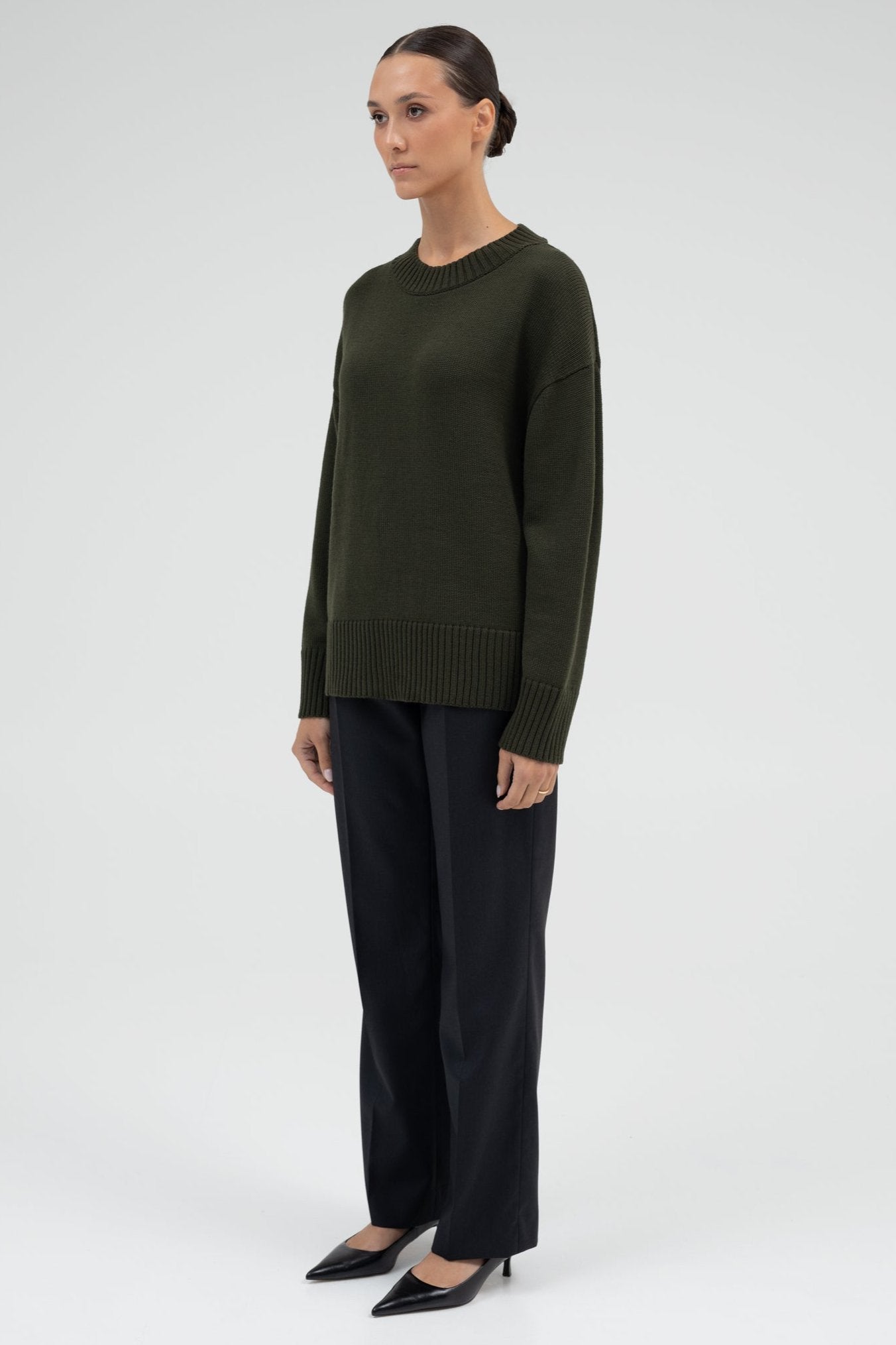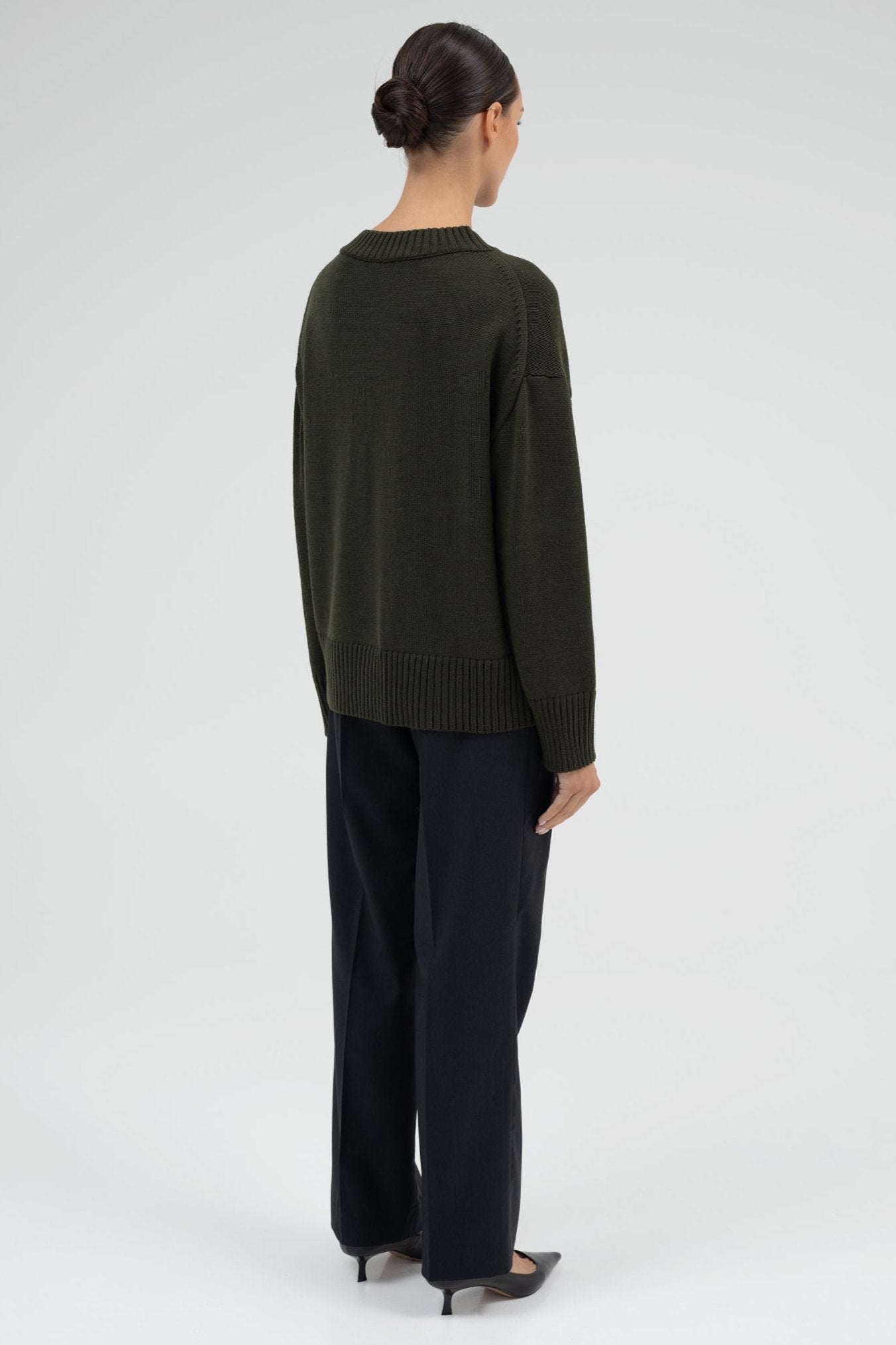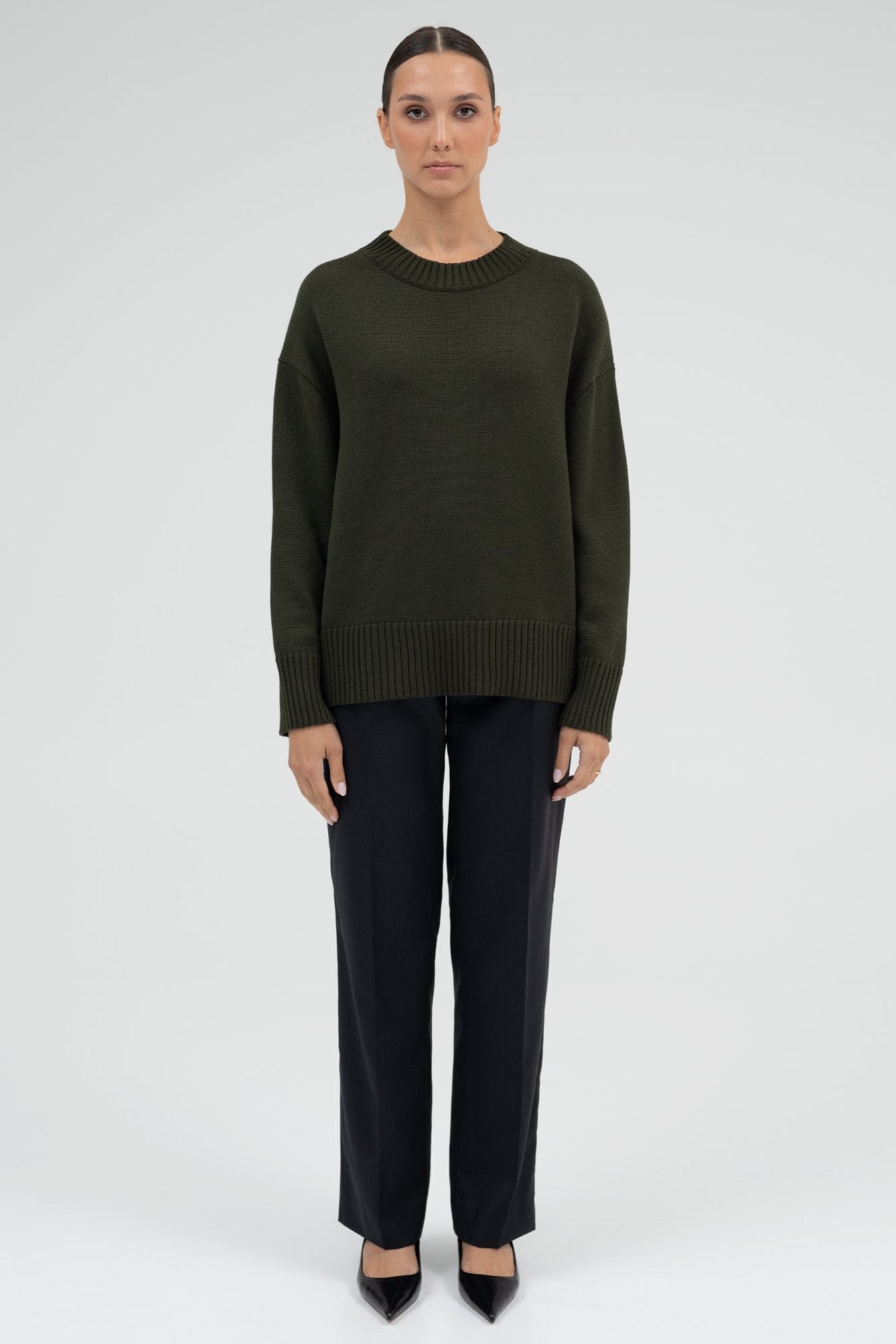 LANI KHAKI GREEN MERINO WOOL SWEATER