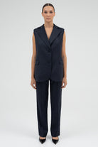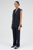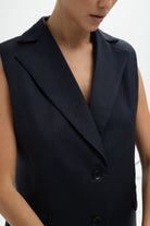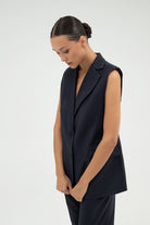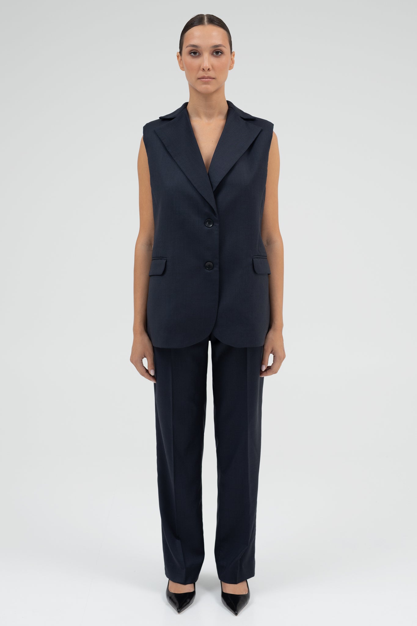 VALLE NAVY BLUE FINE WOOL SLEEVELESS BLAZER
